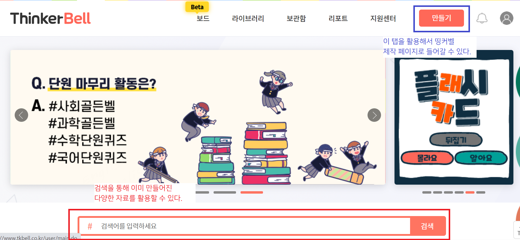 만들기 탭을 이용해서 띵커벨 제작 페이지 입장 가능