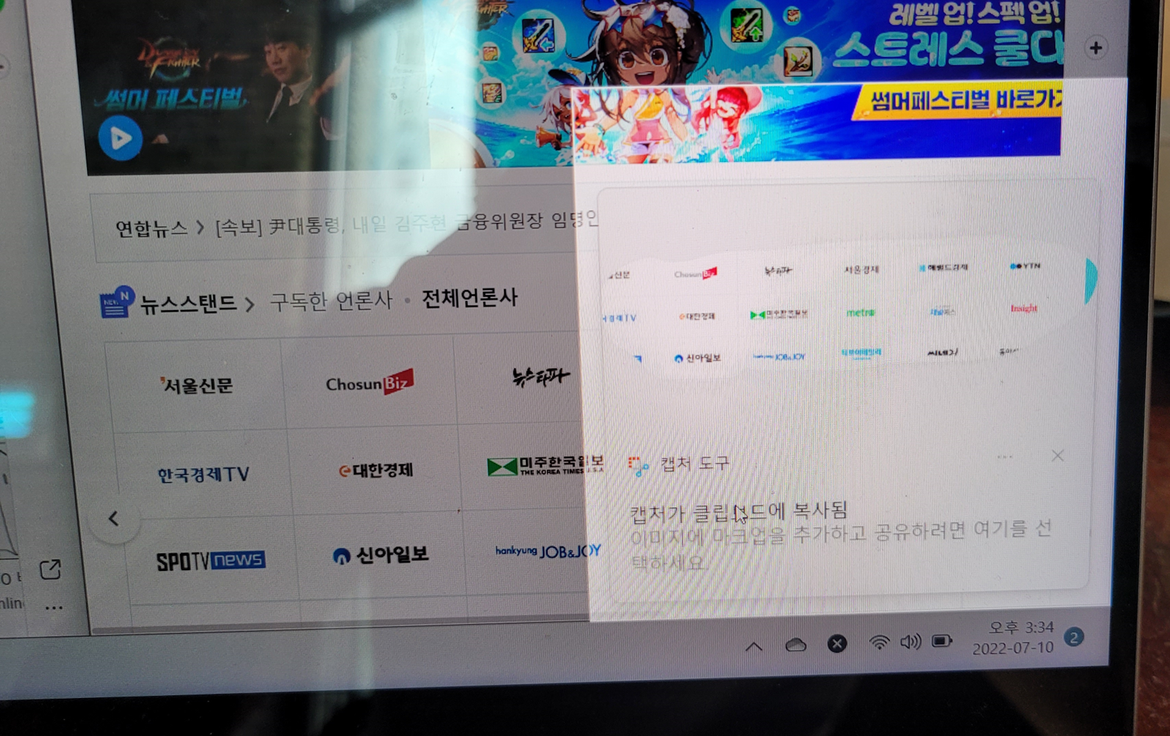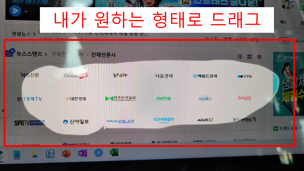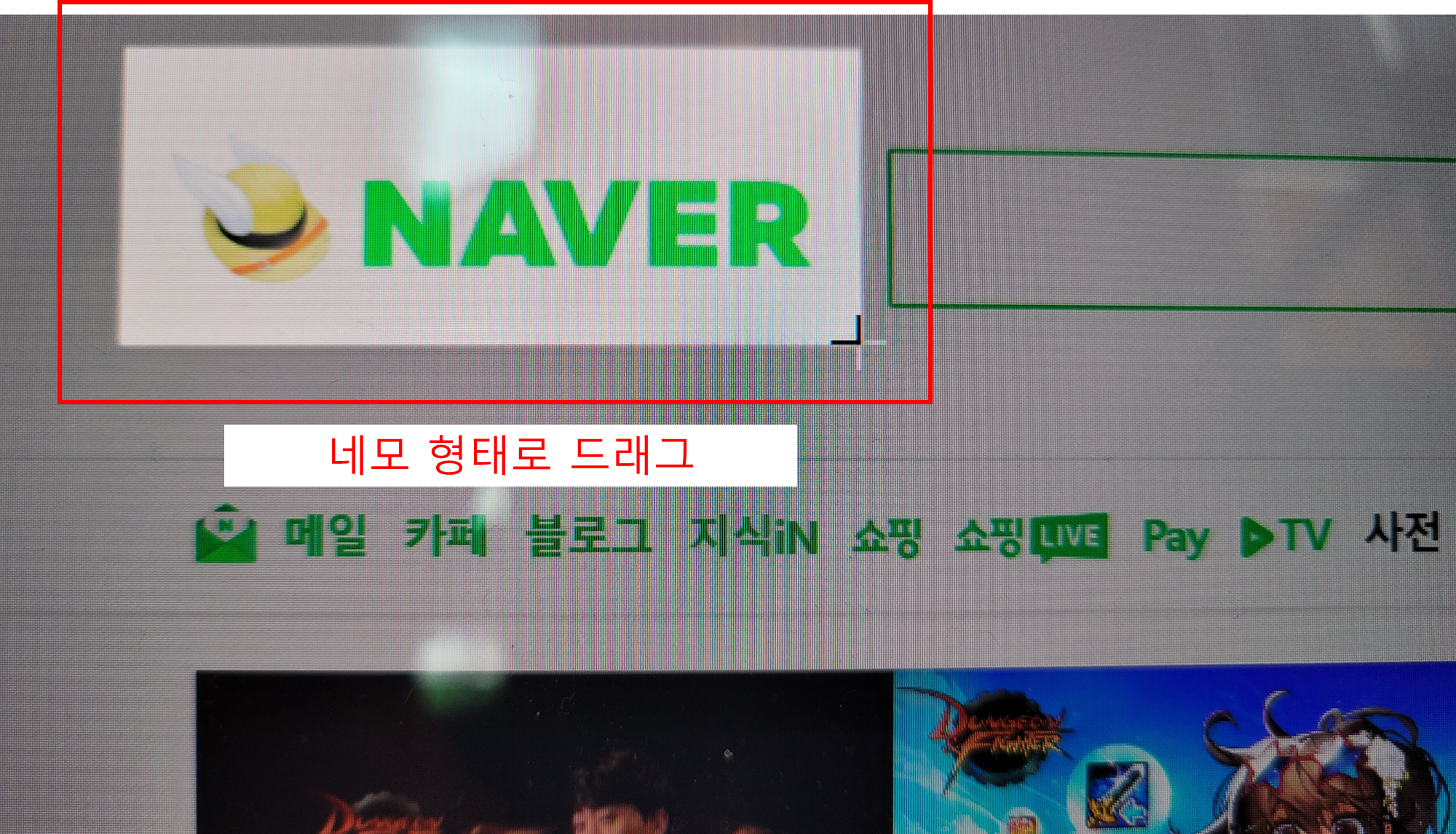 모니터 속 화면이 하나로 보이지만 실제로는 나눠져 있습니다. 그 중 하나의 영역을 선택하면 캡쳐됩니다.