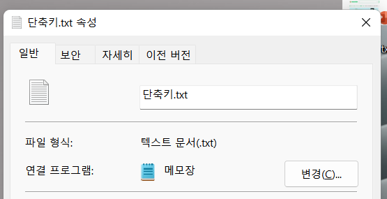 어떤 창을 띄우고 있을 때 유용한 단축키