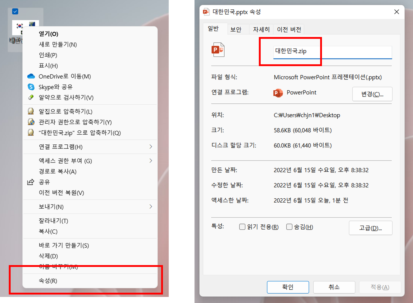 2022.06.15 - [IT 이야기] - exe, hwp, ppt, zip 같은 확장명 바꾸는 방법 + 확장명 보이게 하는 방법