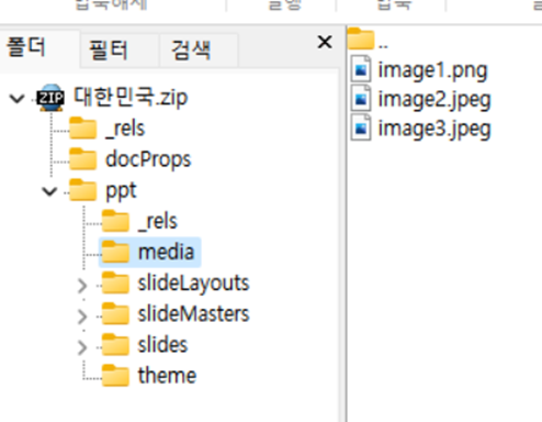 4. 압축 파일 경로 상의 PPT>media 내부를 보면,