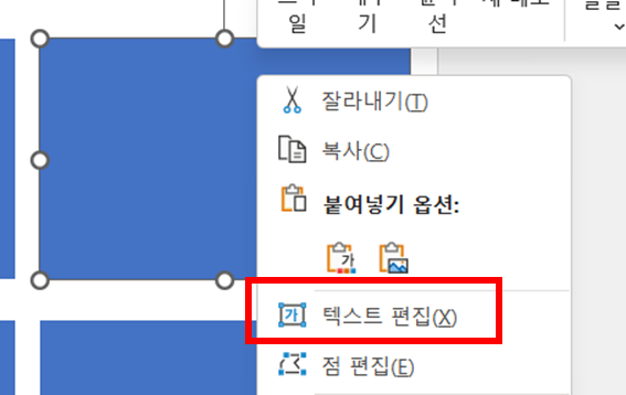 우측 마우스 클릭 후, 텍스트 편집