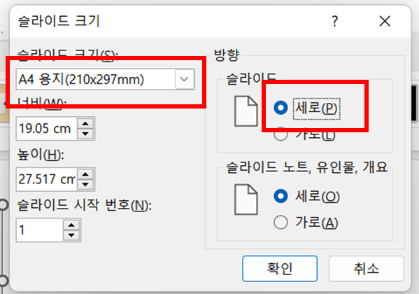 3. 파워포인트의 페이지를 A4 사이즈로 변경하기