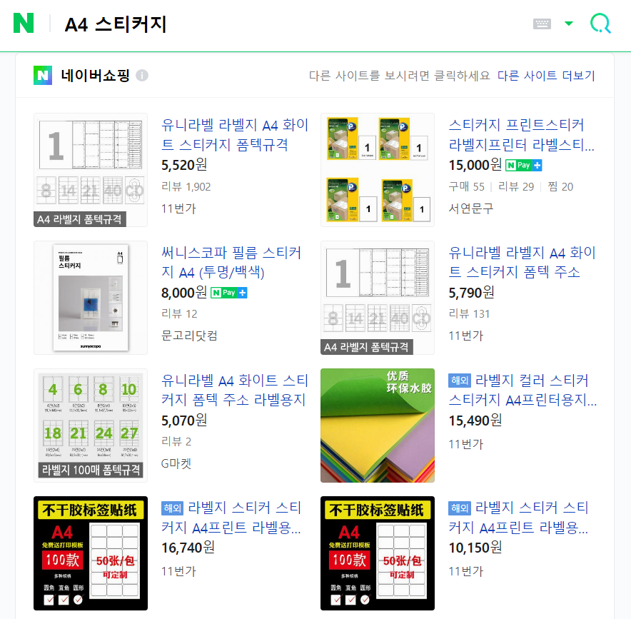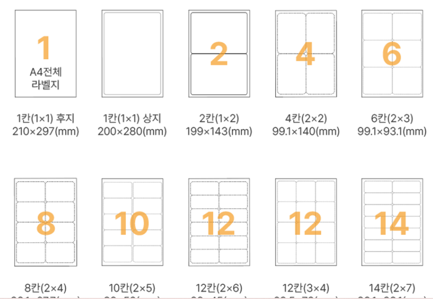 특정 사이트가 아니더라도 왠만한 스토어에서 다양한 규격의 라벨지를 구입할 수 있습니다.