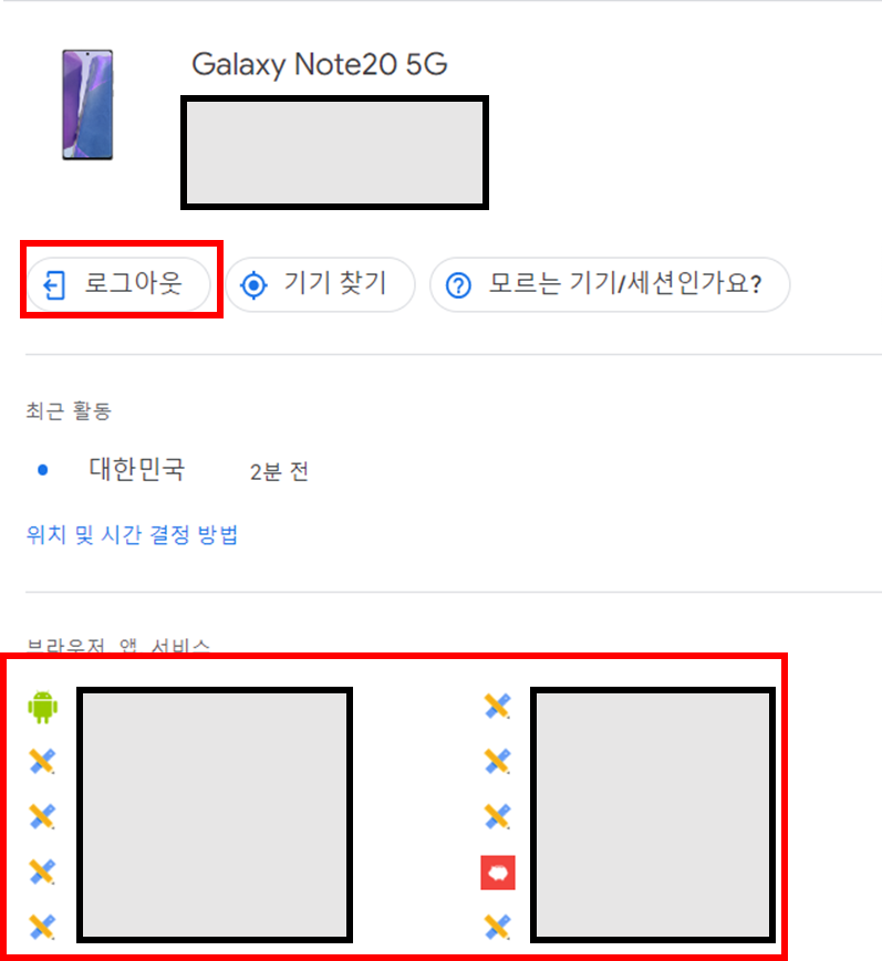 4. 로그아웃 하고 싶은 기기 찾은 후, 로그아웃 클릭