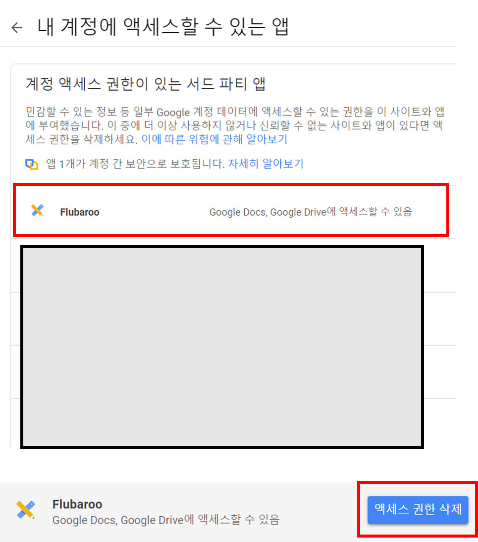 7. (6)번에서 아래로 조금 내리면 구글 계정을 통한 로그인 > 액세스 권한 삭제