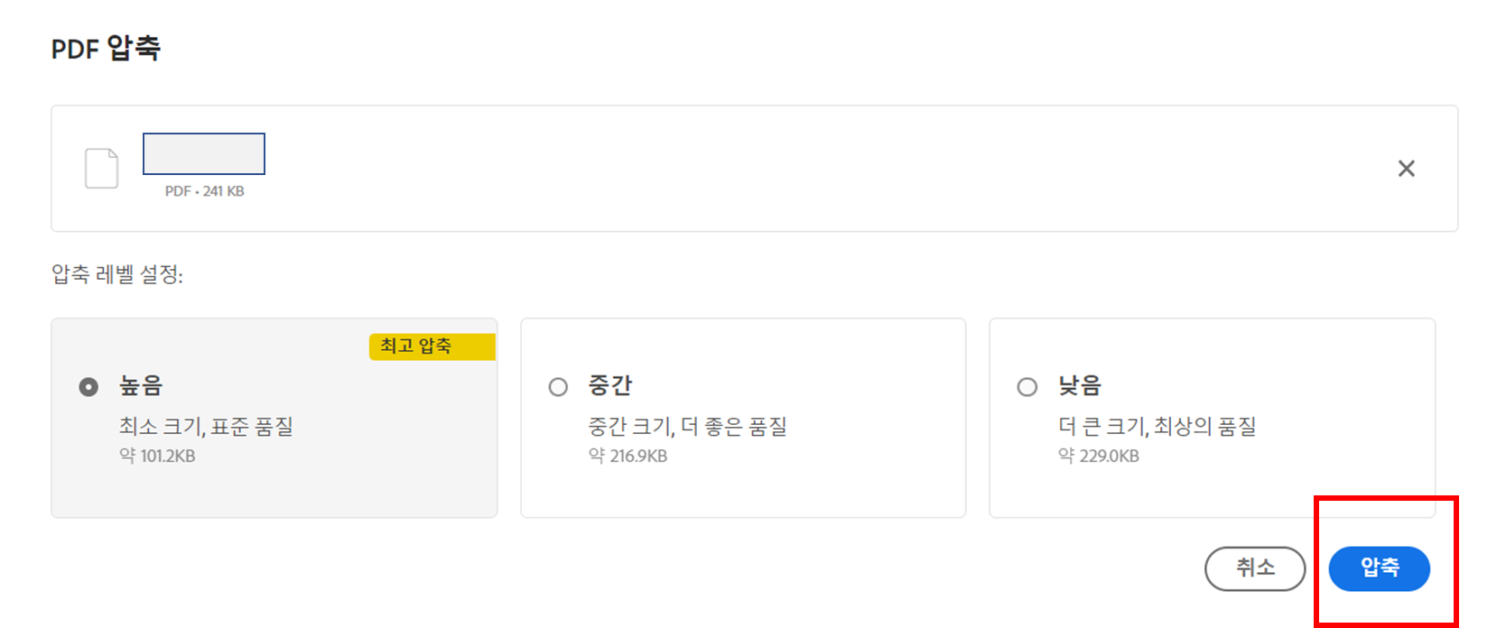 3. 희망하는 압축 정도를 선택합니다