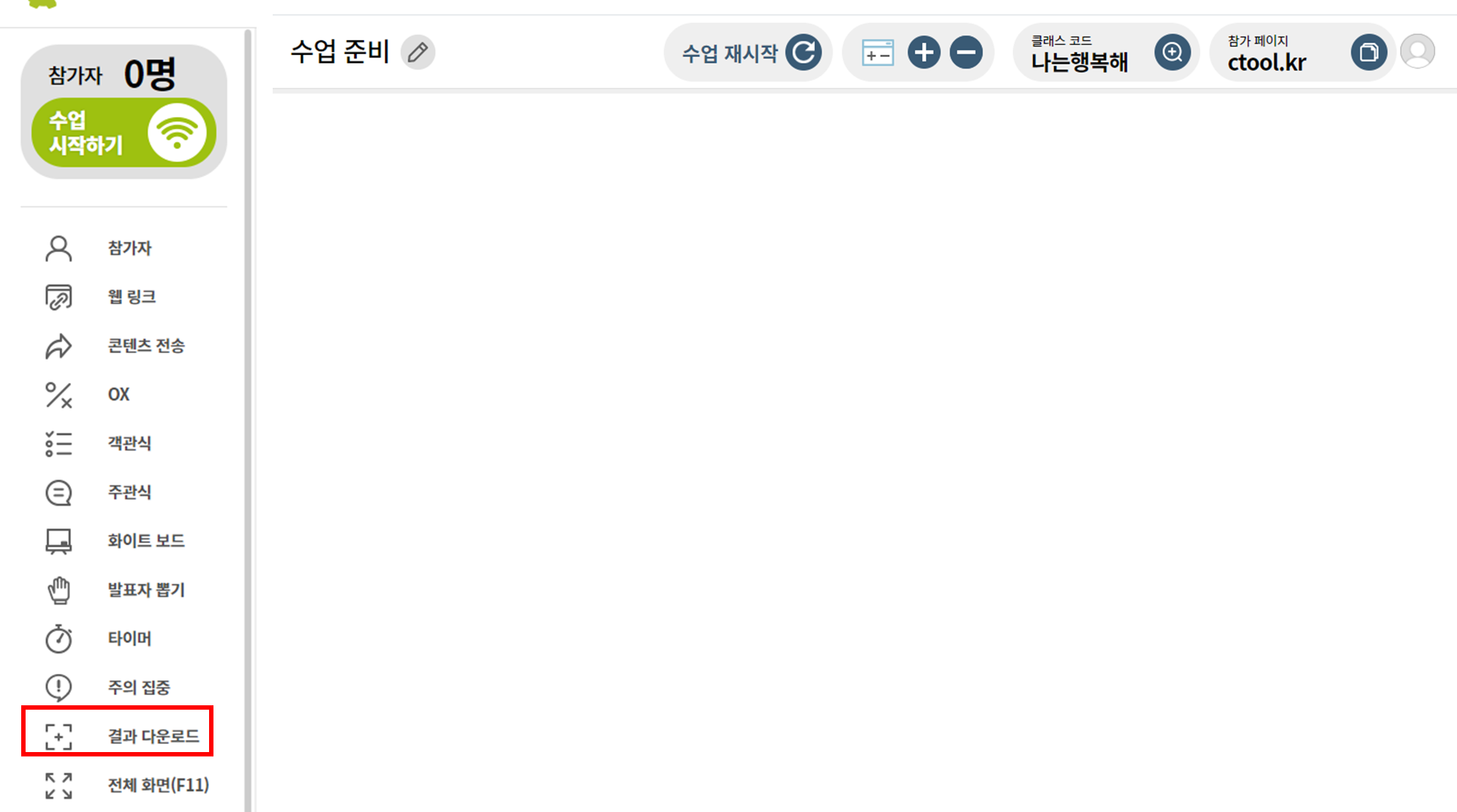 13. 결과 다운로드 : 학생들의 활동 결과물을 그때 그때 다운로드 할 수 있습니다.