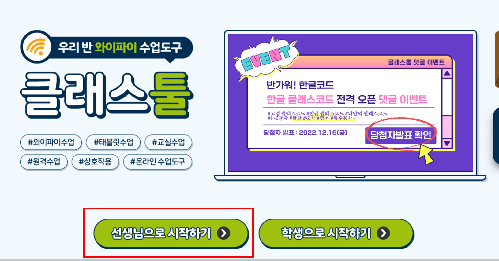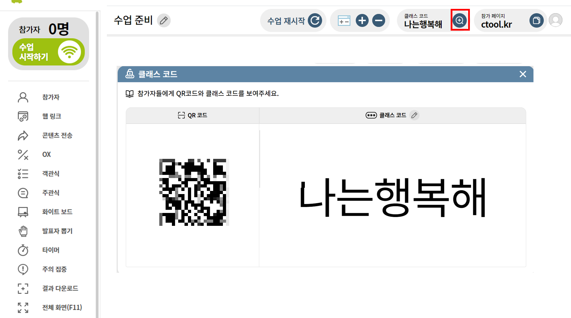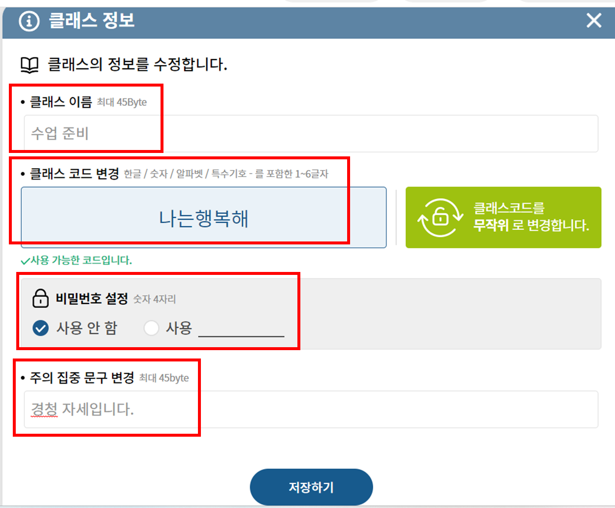 2. 클래스 코드 변경 : 우리반 클래스툴로 접속할 수 있는 ID 입니다. 한글도 입력가능합니다.