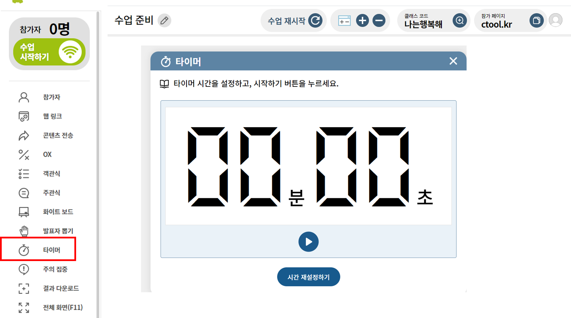 클래스툴 수업의 학생 참여 페이지. 로그인 없이 참여할 수 있어요.