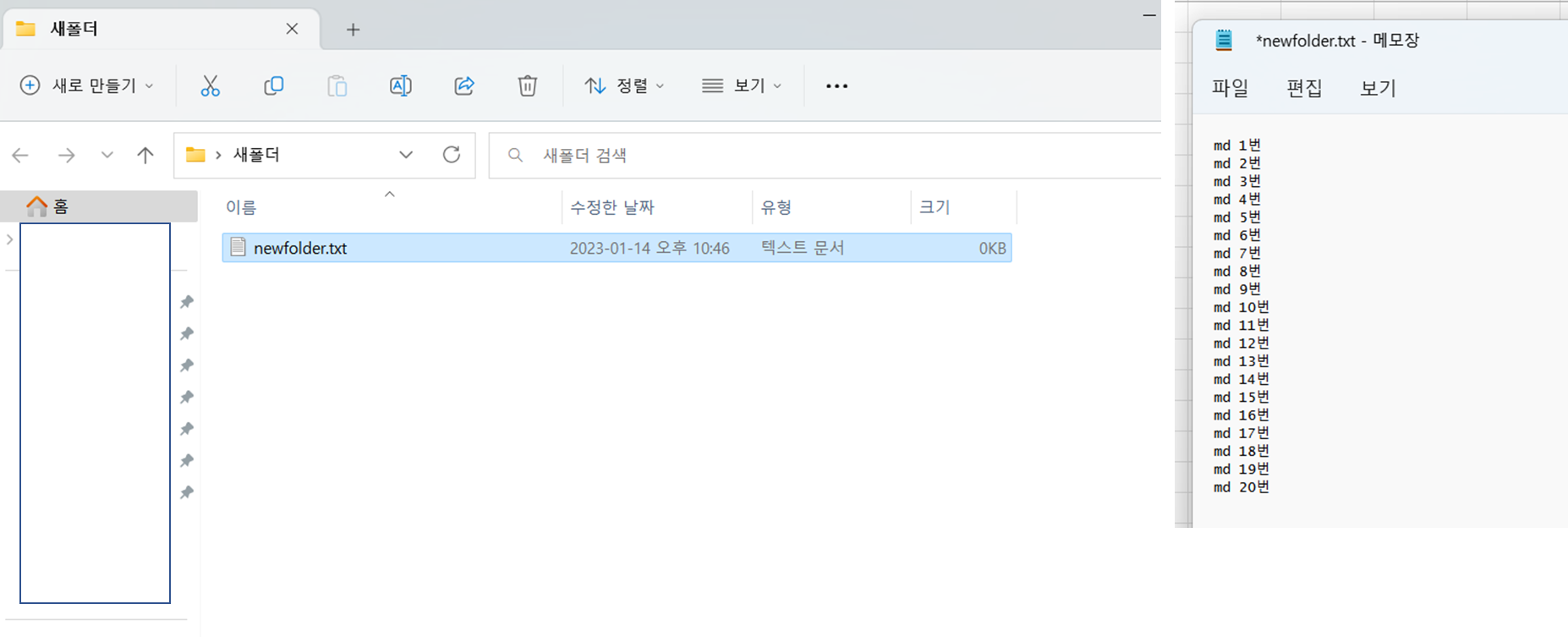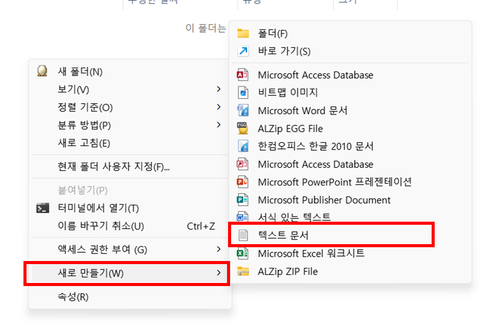 2. 폴더를 실행하고, 폴더 안에 메모장을 생성합니다 (txt파일)