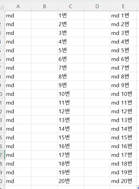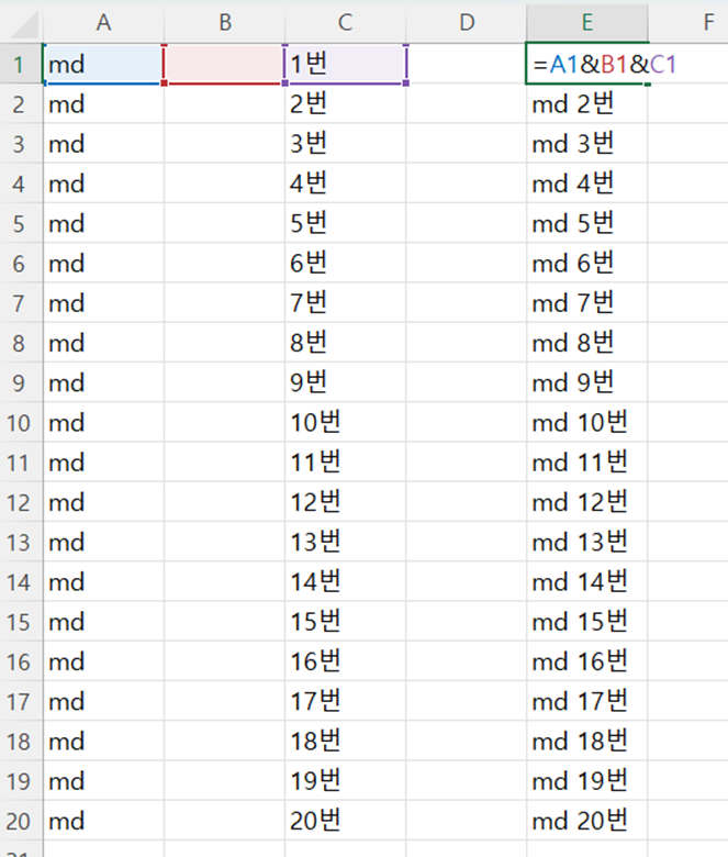 E열에는 A,B,C를 &로 묶은 것을 적어줍니다.