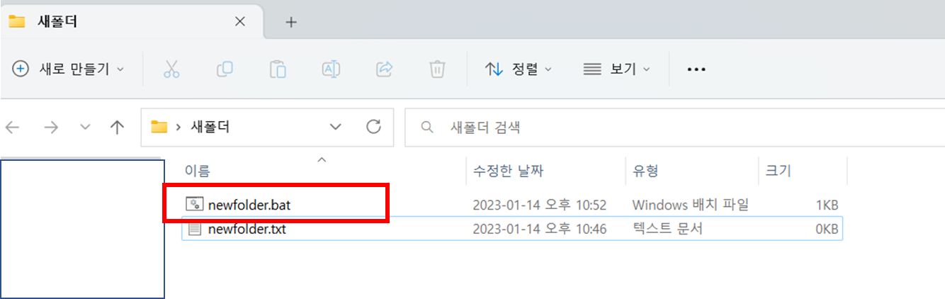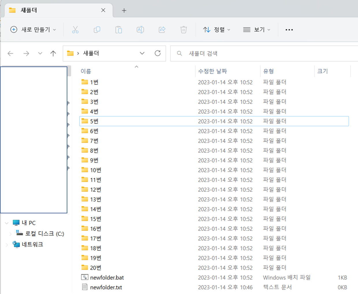 7. newfolder.bat 을 실행합니다. 폴더가 생성되었습니다.