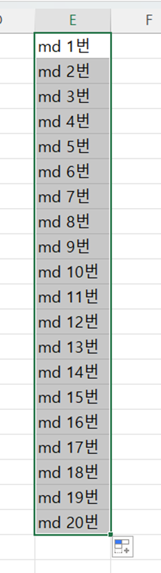 5. E열의 내용을 복사합니다. (2)번에서 생성한 메모장에 복사합니다.