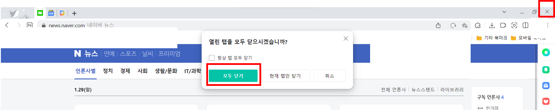 4. 네이버 웨일을 닫아 봅니다 > 모두 닫기