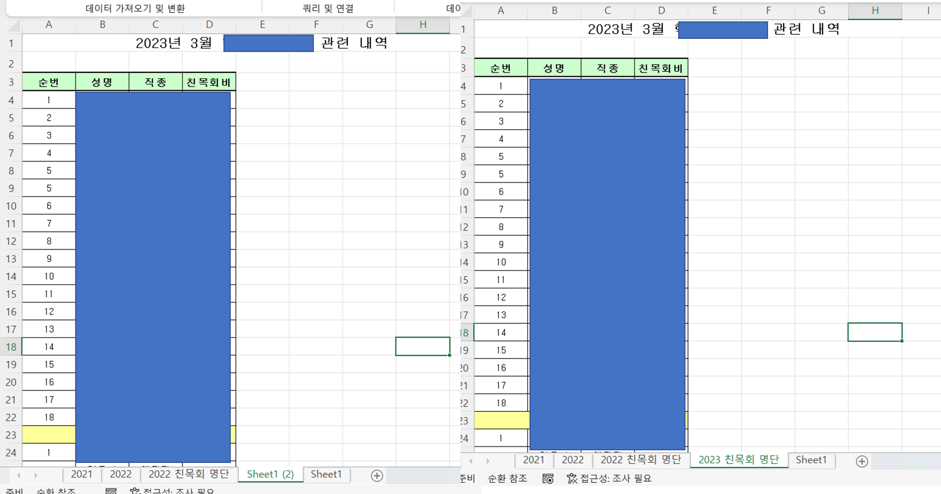 4. 원하는 위치로 이동되었습니다. > 시트 이름을 원하는 것으로 바꿉니다