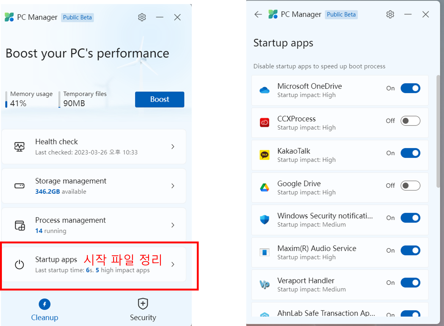 1. 딥 클린업(Deep Cleanup) : 용량 확보 청소 기능입니다.