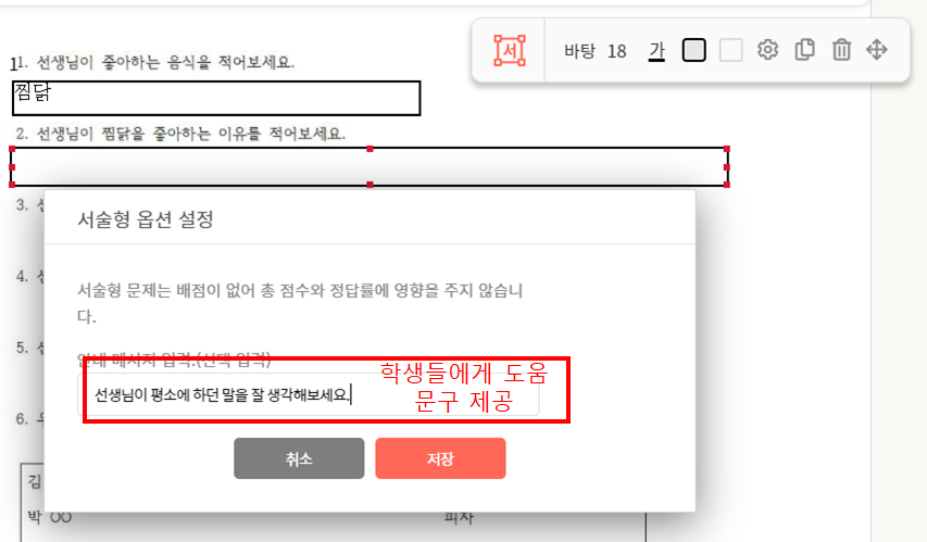 ** 녹색부분에는 배경이 되는 학습지를 입력해야 합니다. **