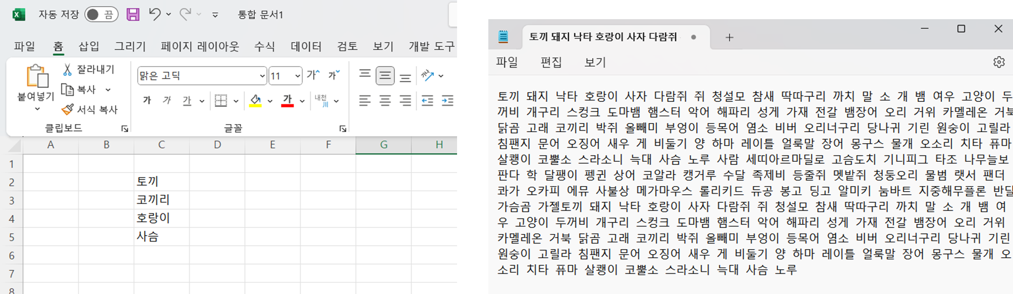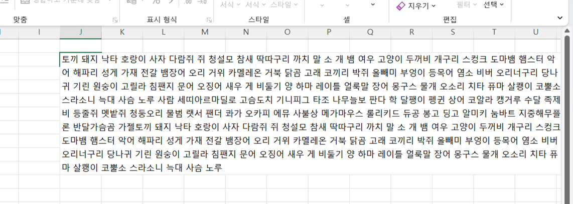 2. 글자 덩어리를 엑셀 '한 칸' 에 모두 집어넣습니다.