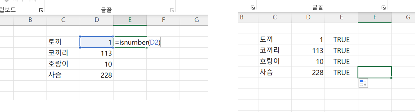 5. isnumber 함수를 이용해, 숫자가 도출되었는지 여부를 확인할 수 있습니다.