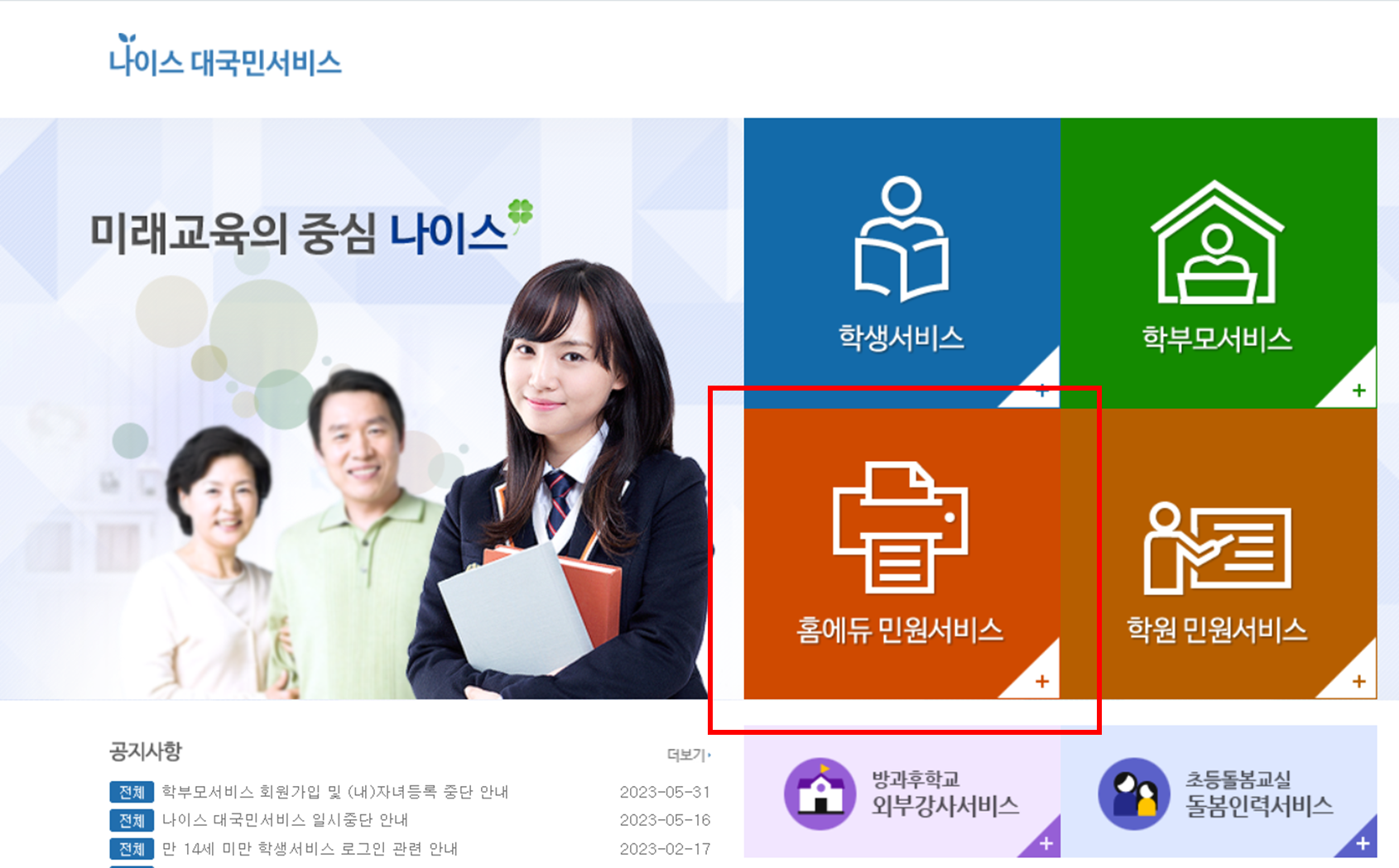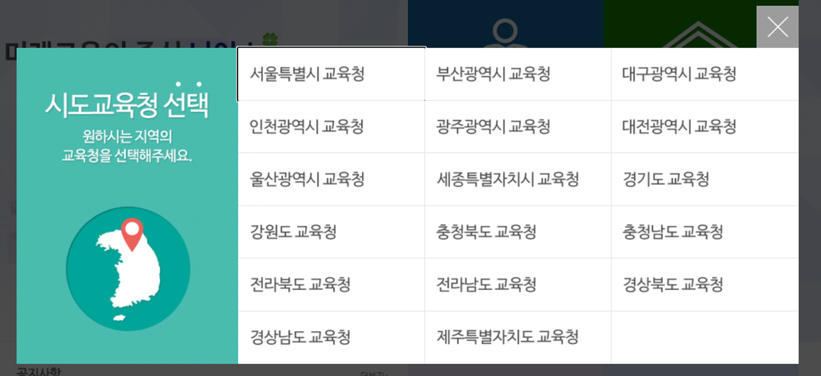 2. 홈에듀 민원서비스 접속 > 해당 교육지원청 클릭