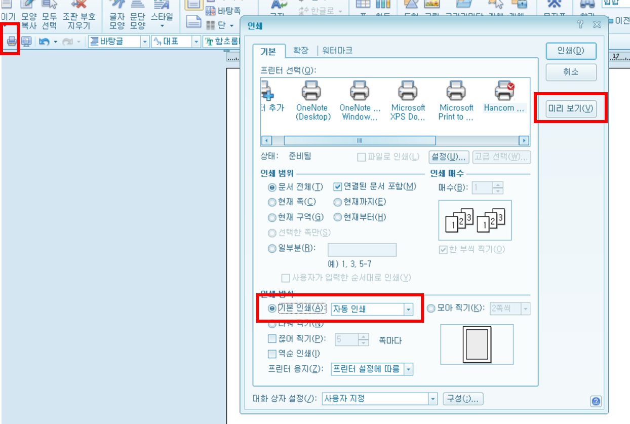 1. 인쇄 > 기본 인쇄 > 미리 보기 확인