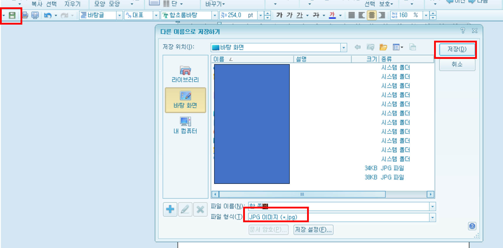 2. 저장 > 그림 파일 선택 > 저장 완료