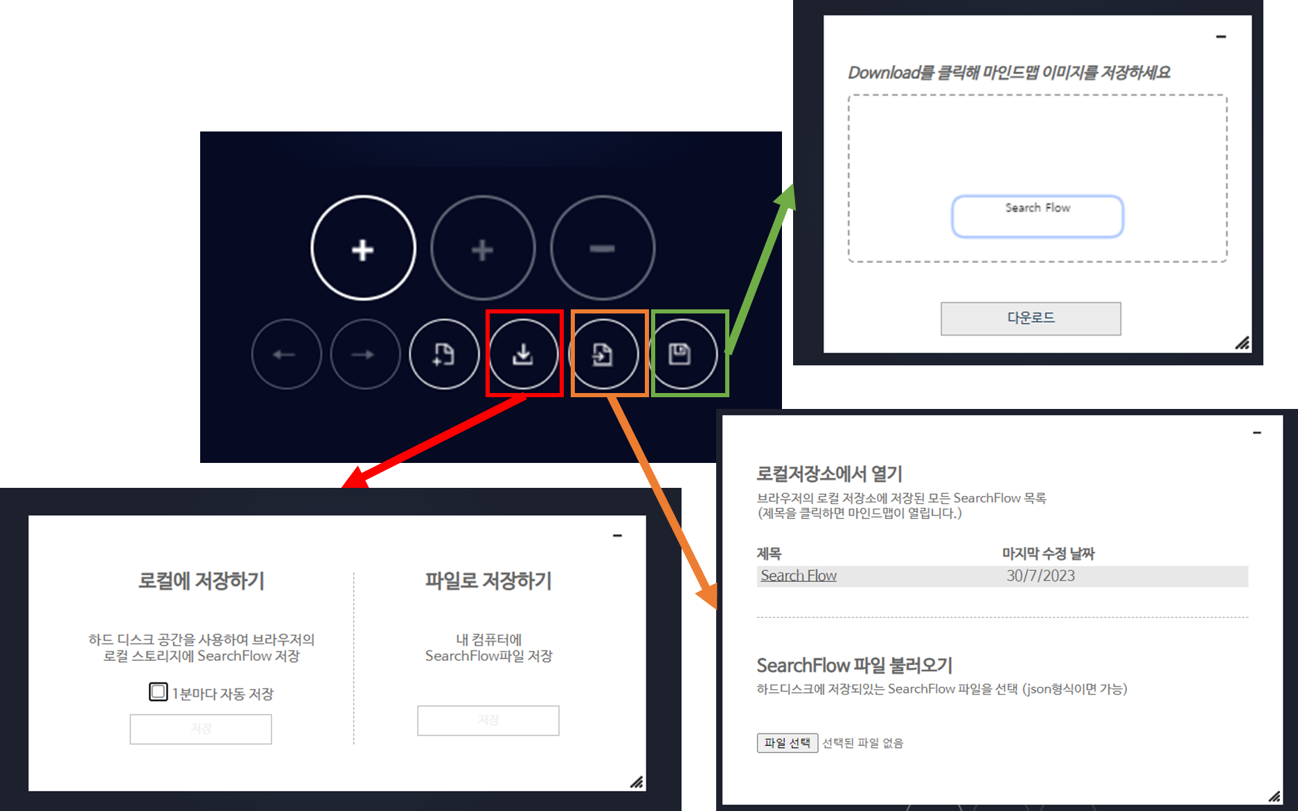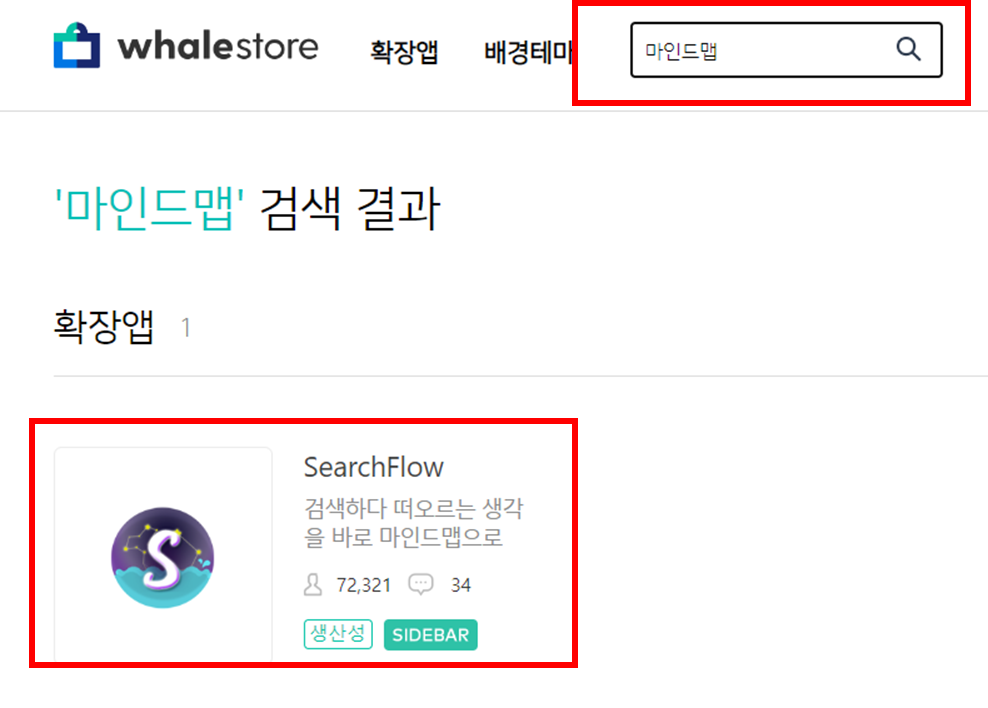 1. 우측 상단 점 3개 클릭 > 확장앱 > 마인드맵 검색 > SearchFlow