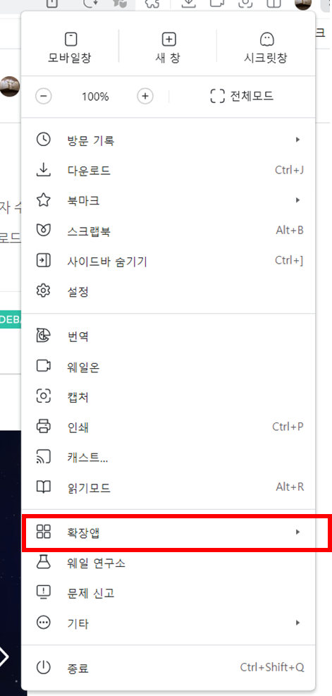 2. 웨일에 추가하기 > 추가