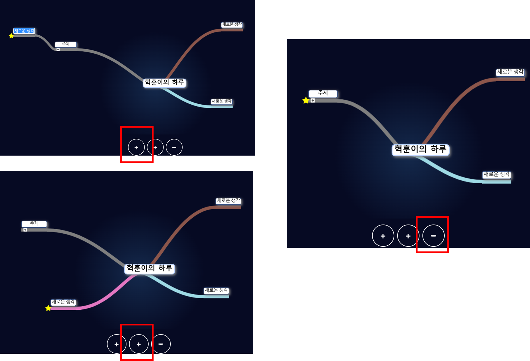 첫번째 + : 선택된 영역의 하위에 하나 추가